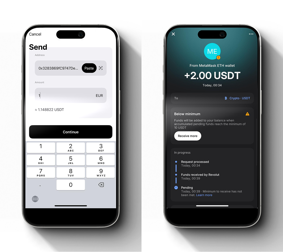 Once credited, you can convert USDT to fiat, spend it, or keep it in Revolut