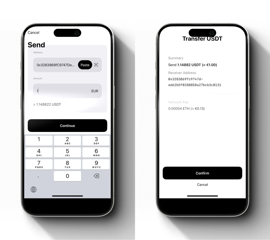 • Lower costs: By supporting direct network-level transactions, Revolut’s Ramp eliminates unnecessary intermediaries. You can transfer USDT directly to or from your Cryptnox Wallet, reducing conversion steps and saving on transaction fees