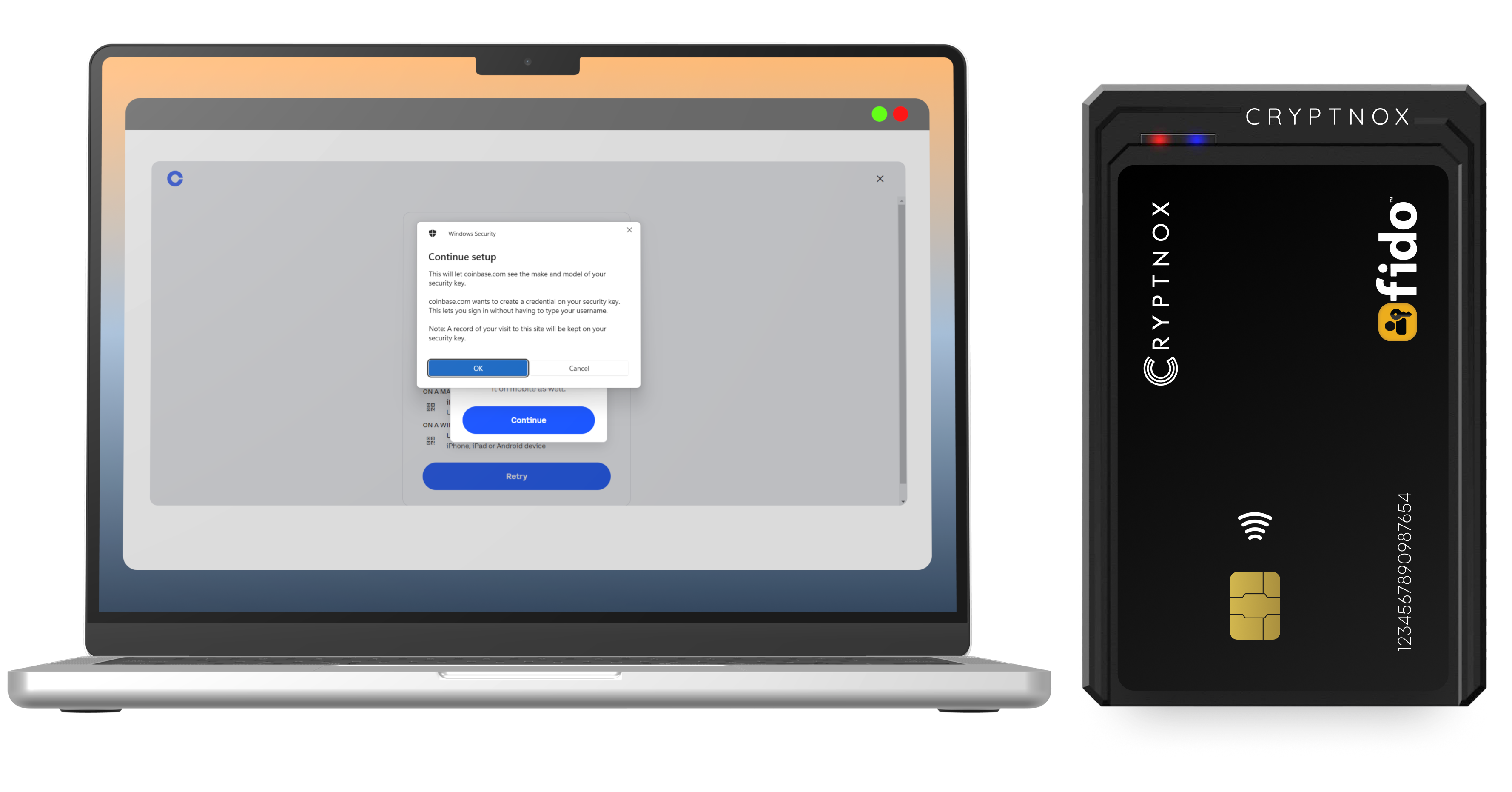 You have successfully setup the Cryptnox FIDO2 passkey on Coinbase.