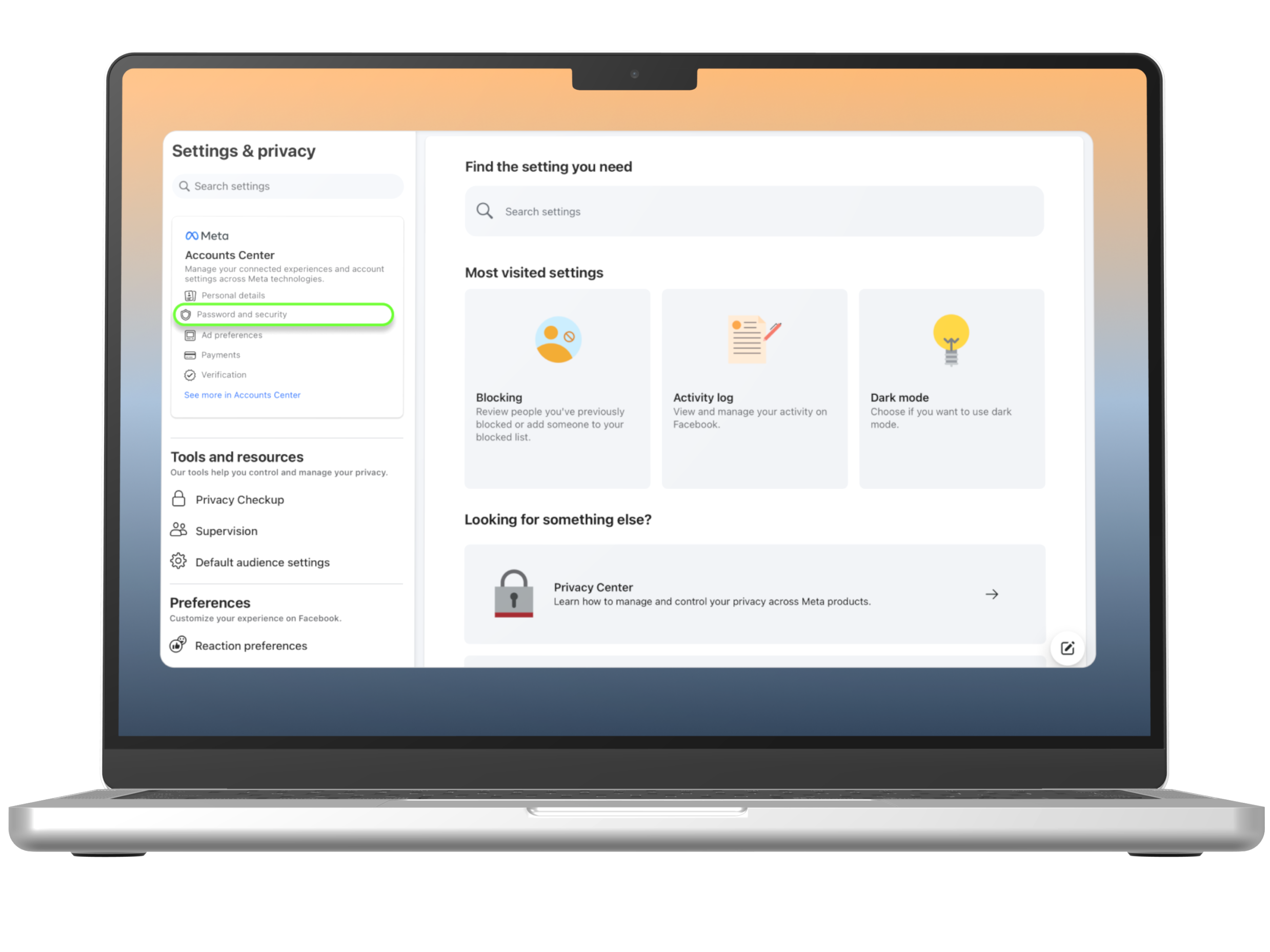 Log in to your Facebook account and go to Settings & privacy. Then select “Password and security” as shown.